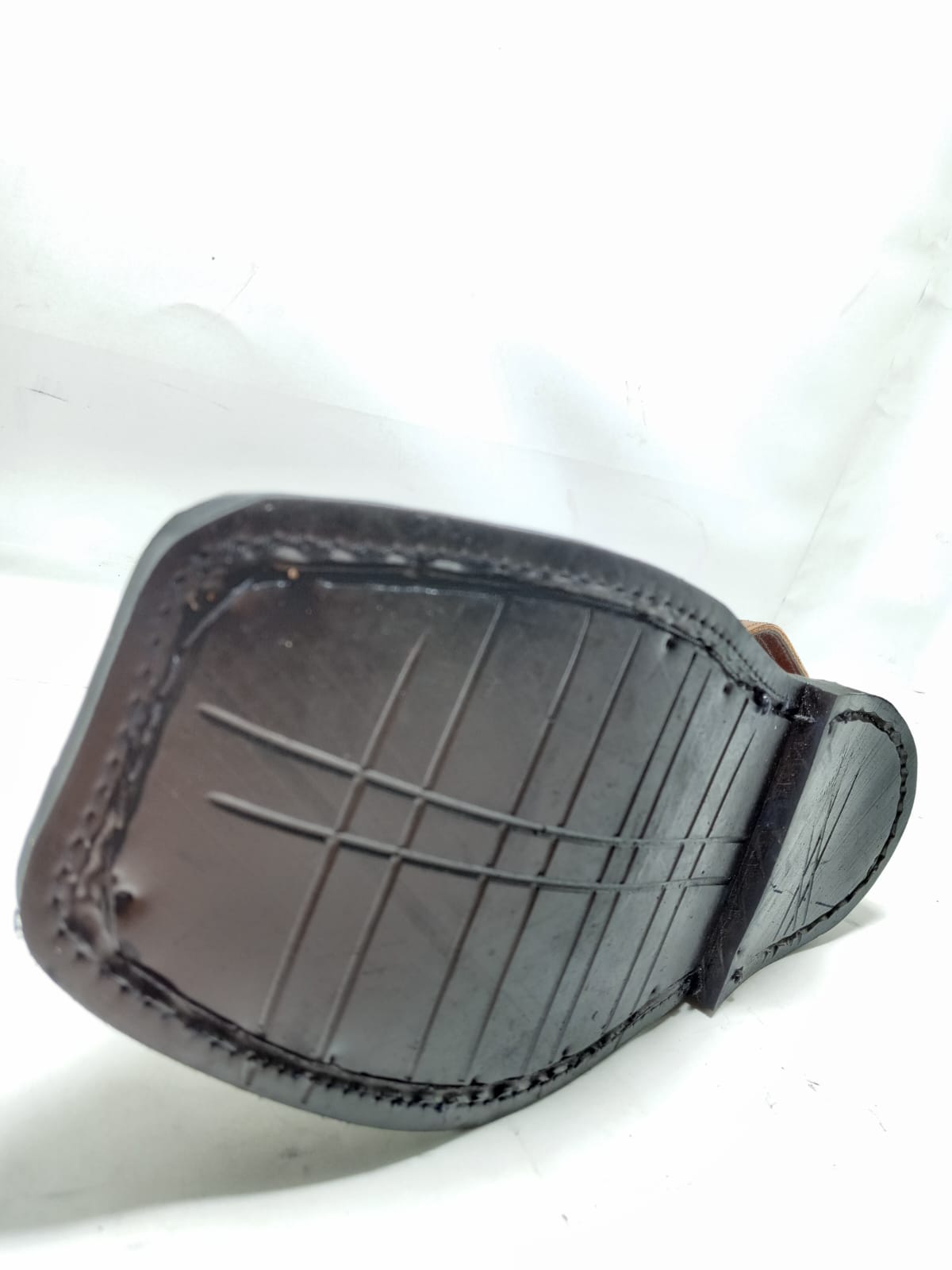 - Adjustable Buckle Strap: Equipped with a sturdy, classic brass-toned buckle on the backstrap, allowing for a customizable and secure fit.