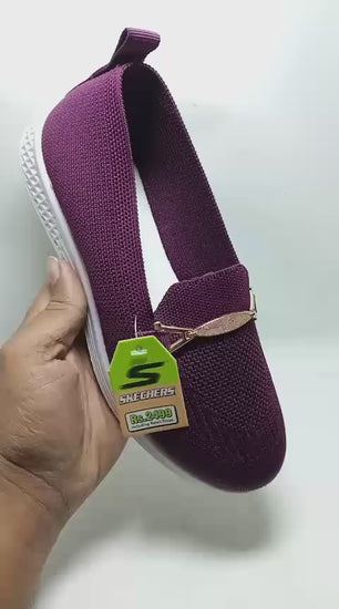 The rich plum hue of the breathable knit upper makes a subtle yet striking statement, complemented by delicate gold accents. With Air-Cooled Memory Foam insoles, these loafers offer exceptional comfort and support, making them a versatile choice for any occasion – from casual outings to more dressed-up events.