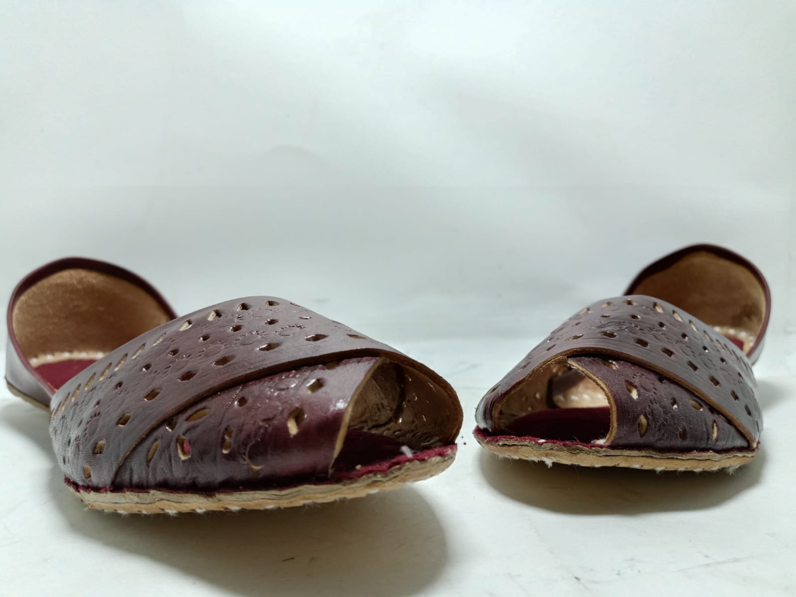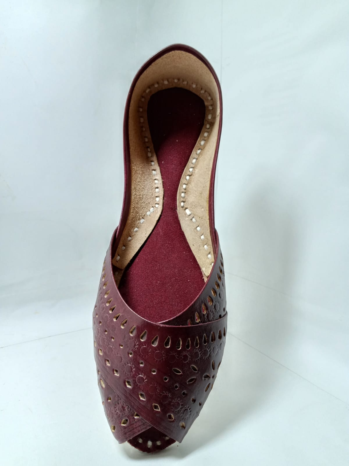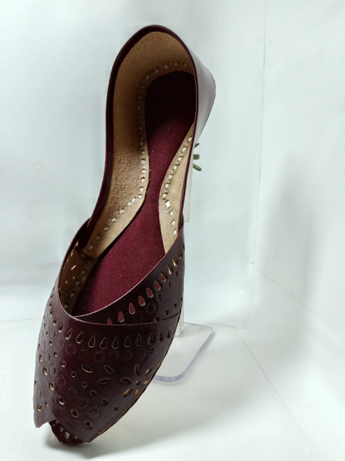 The Jeniius Touch: Hand-Punched Maroon Leather Jutti Khussa Modern & Traditional